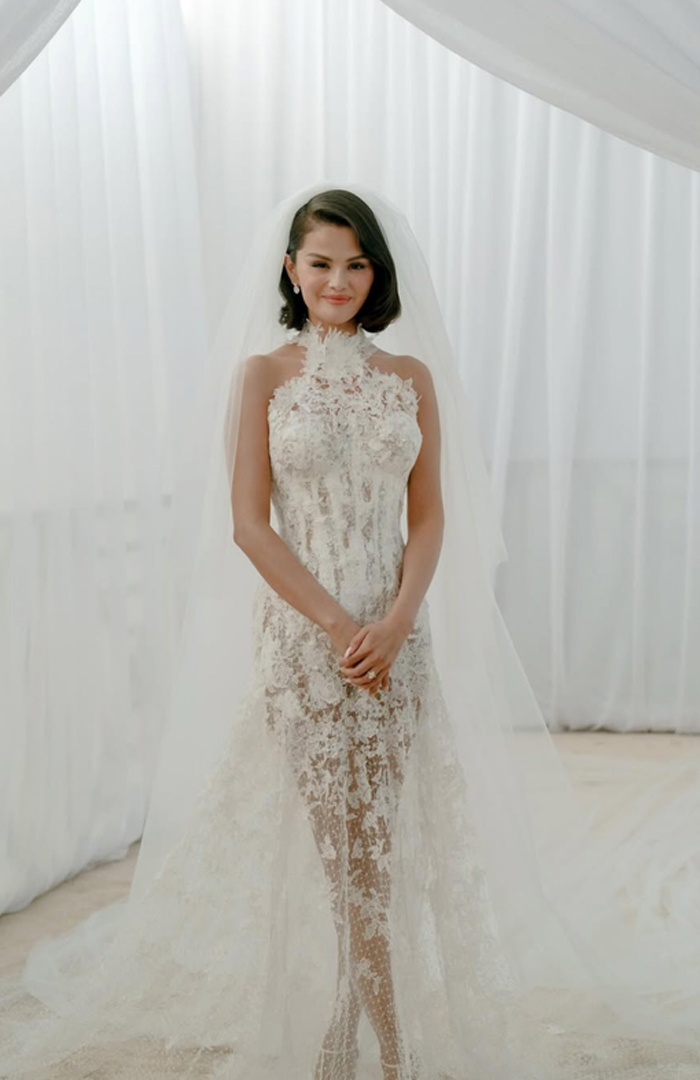 الدانتيل الشفاف... سيلينا غوميز تكشف عن فستان زفافها وتفاصيله الرومانسية