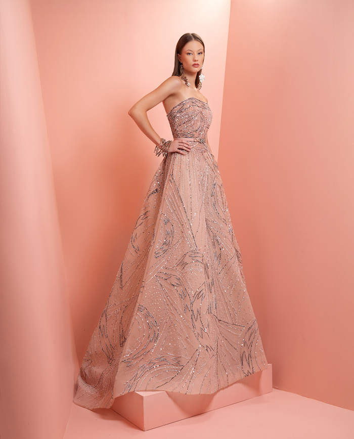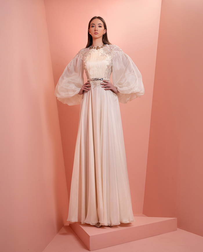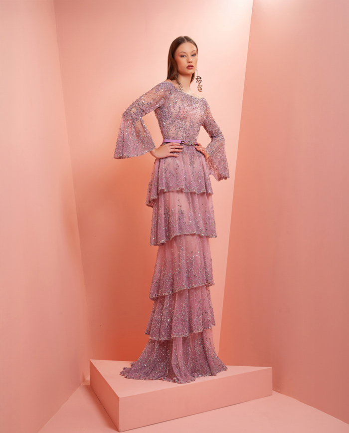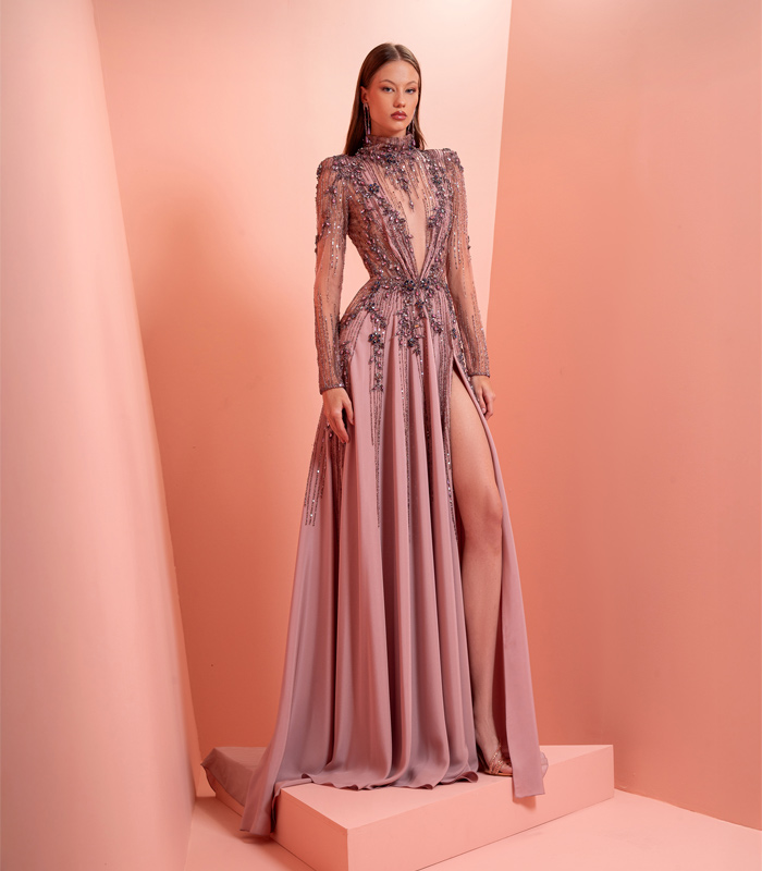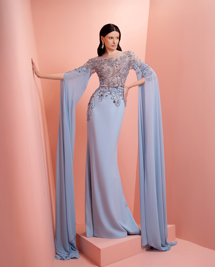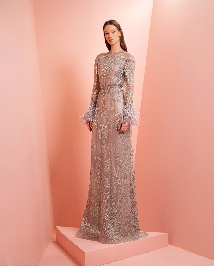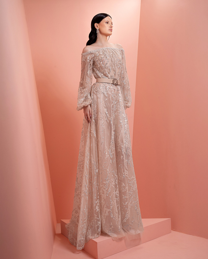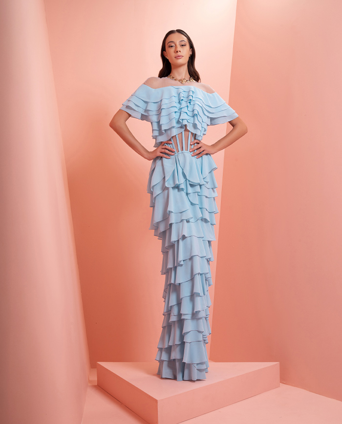 ويعكس التدرج الثاني في تفاصيل الأقمشة المعتمدة والتصاميم إذ تتأرجح التصاميم بين نعومة الكريب والشيفون والتول والدانتيل، إضافة إلى الريش الذي يمنح بعض الإطلالات لمسة درامية حالمة والهادئة من جهة، الى قطع تزدان بالشك والتلألؤ من جهة أخرى، مما يمنح المرأة خيارات متعددة تناسب لحظات مختلفة.