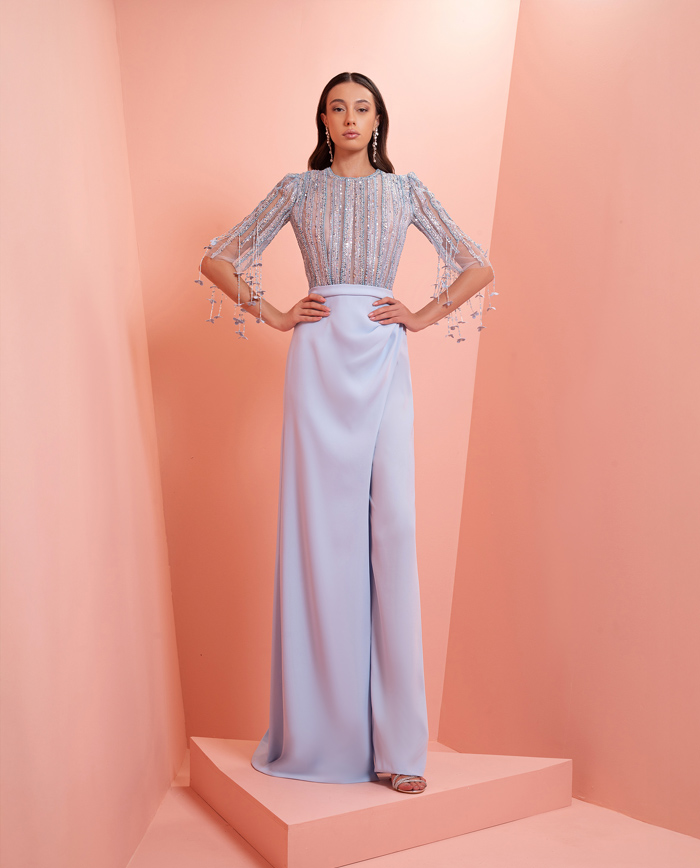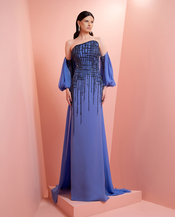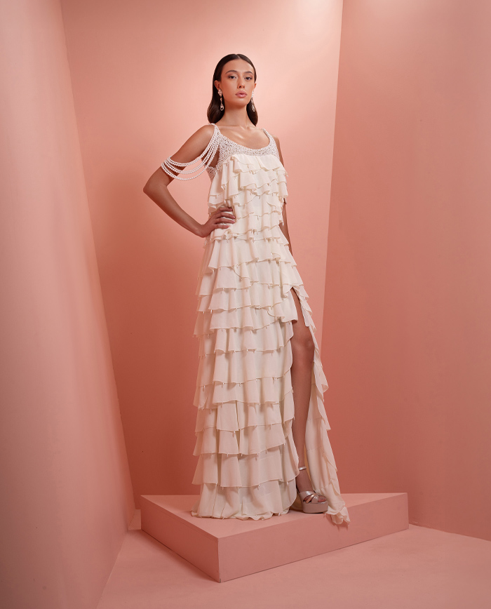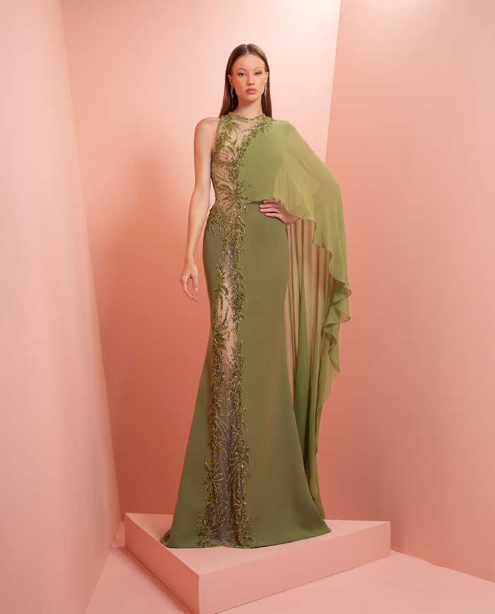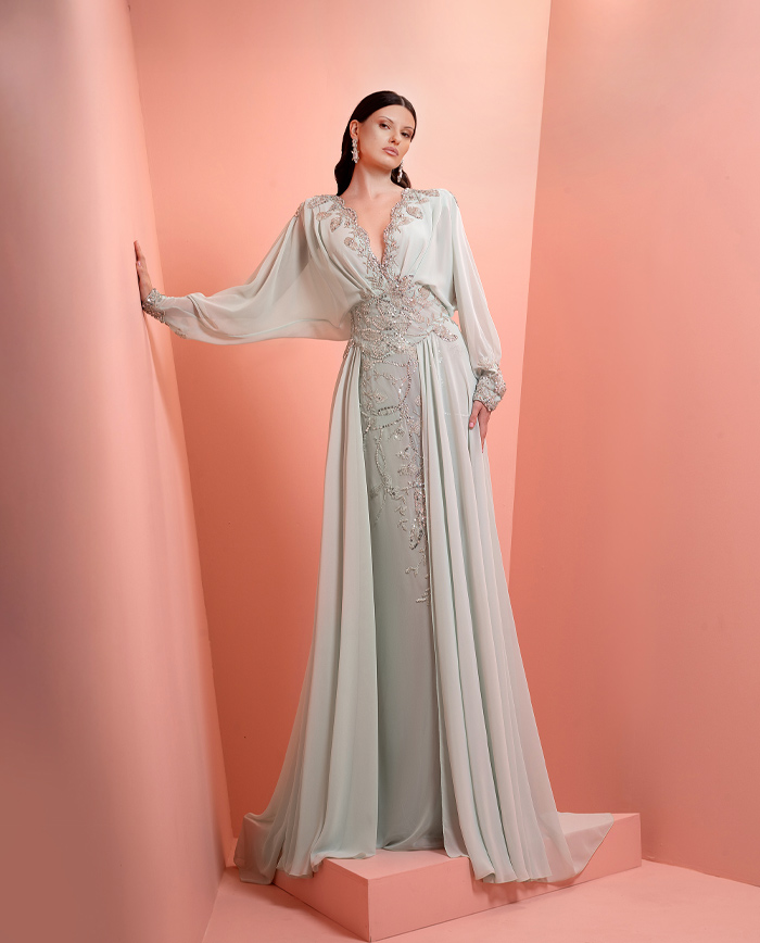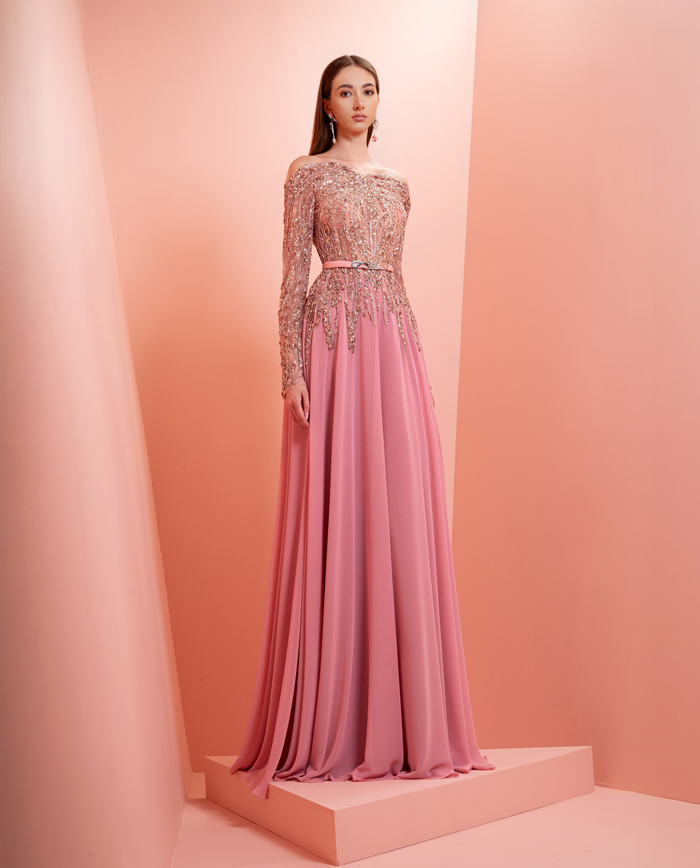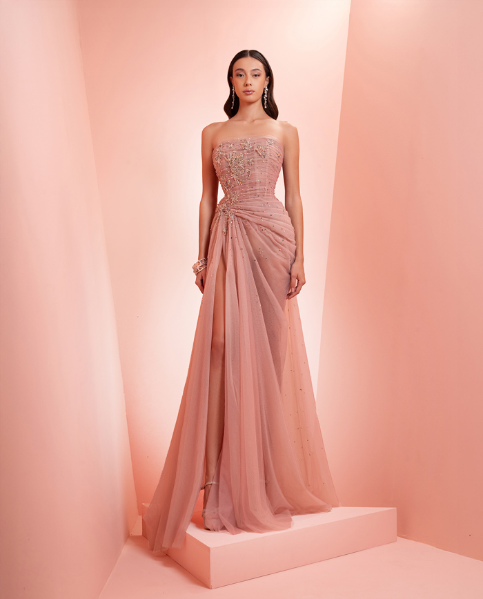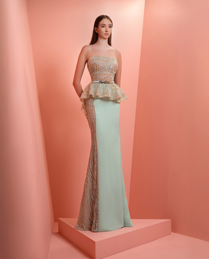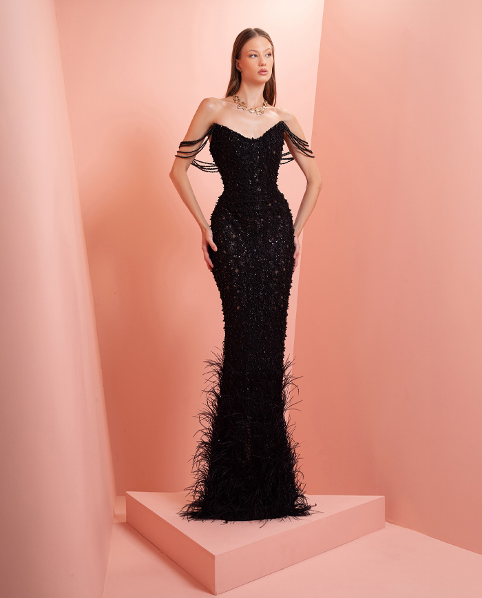 ويعكس التدرج الثاني في تفاصيل الأقمشة المعتمدة والتصاميم إذ تتأرجح التصاميم بين نعومة الكريب والشيفون والتول والدانتيل، إضافة إلى الريش الذي يمنح بعض الإطلالات لمسة درامية حالمة والهادئة من جهة، الى قطع تزدان بالشك والتلألؤ من جهة أخرى، مما يمنح المرأة خيارات متعددة تناسب لحظات مختلفة.