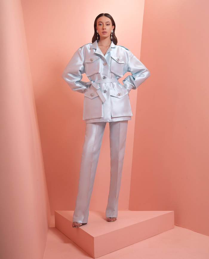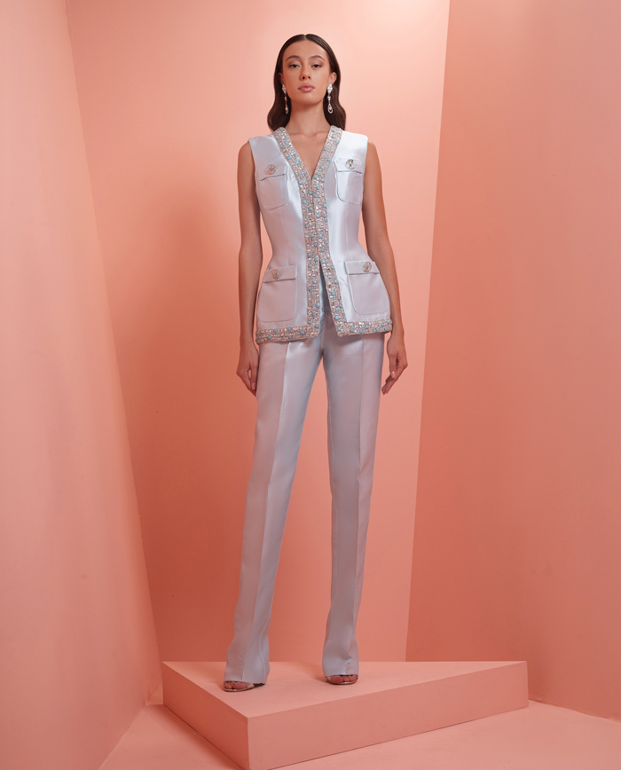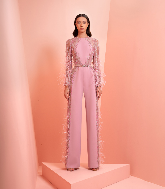 ترتكز تصاميم المجموعة بشكل أساسي على الفساتين الطويلة التي تعكس الانسيابية، مع حضور عدد من قطع الجمبسوت التي ترسم طابعاً عملياً. وتبرز في المجموعة قطع أيقونية من المعاطف صممت بعناية بأنامل المصمم، إضافةً إلى سترات البلايزر التي تضفي بُعداً خاصاً على المجموعة. ومن جديد إبداعات المصمم، إطلاق خط أحزمة مبتكر يتزينّ بشعار جديد يمنح المجموعة هوية متجددة.