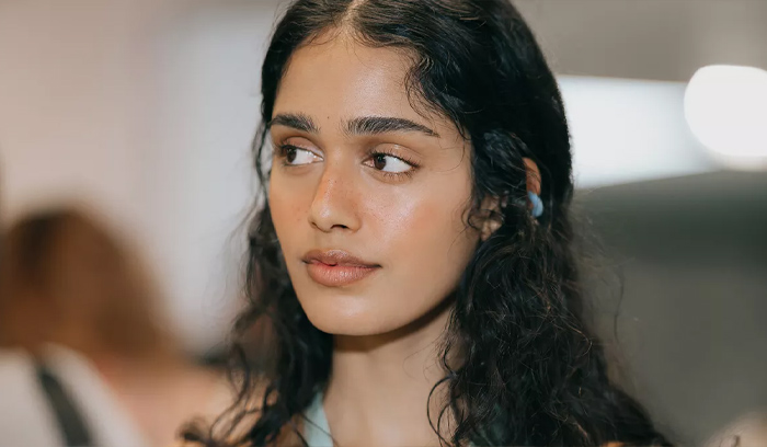أما الحواجب، فتمت تسويتها بالفرشاة وملء الفراغات برفق لتحديد الملامح من دون قسوة، مع لمسة خفيفة من الكونتور لنحت الوجه بخفة.