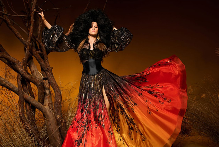 تجسّد كل قطعة شراسة الأنوثة بطريقة منسجمة مع الرقة... وتستحضر ألواناً قوية مثل الاسود والذهبي والبرونز مستوحاة من المعادن، كما أضافت الأحجار لمعاناً استثنائياً تلألأ فوق الخامات.