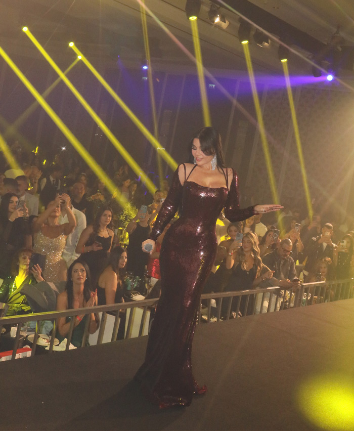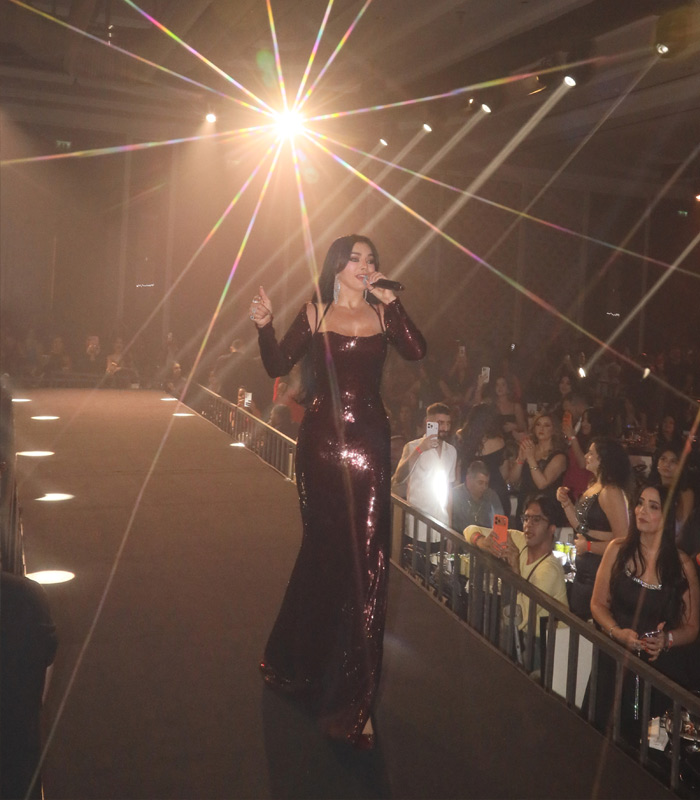 وفي التفاصيل، تألّقت الديفا هيفاء وهبي بإطلالةٍ ملفتة من فستان برغندي لامع من توقيع المصمم اللبناني رامي سلمون، فأسرت القلوب المحبين والحاضرين. وقد وقدّمت للمرّة الأولى أغنيات الجزء الأول من ألبومها الجديد "ميجا هيفا" مباشرةً على المسرح، منها: جاية من المستقبل، سوبر وومان، من أول مرة شفتك، إلى جانب باقة من أشهر أغنياتها وسط تفاعل لافت من الجمهور.