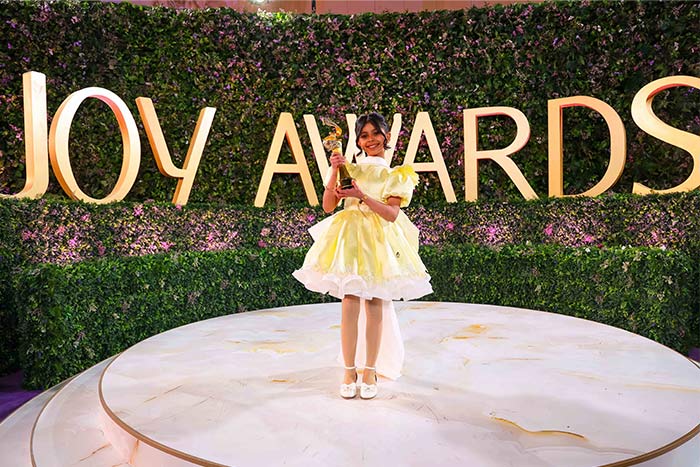 جائزة قدّمها براء عالم ومايان السيد، للنجمة البريطانية ميلي بوبي براون، والمعروفة بأدوارها المميزة في عدد من الأفلام والمسلسلات. وقد تسلّمت الجائزة وسط تفاعل كبير من الحضور، في لحظة عكست البعد العالمي للحفل وحجم المشاركة الدولية ضمن النسخة السادسة من JOY AWARDS.