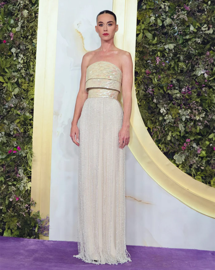 وكانت بيري قد أطلّت على السجادة الخزامية بفستان رائع من توقيع مصممة الأزياء السعودية وعد العقيلي التي استطاعت بإبداعها وتصاميمها المتميزة ان تجذب أكثر النساء أناقة وجاذبية. فخطفت النجمة العالمية الأنظار بفستان من مجموعة وعد العقيلي لربيع وصيف 2026، وقد تميز بكورسيه منحوت بصفائح اللؤلؤ الطبيعية المصقولة يدوياً، لتتلألأ مع الأضواء كما تفعل مياه البحار المتحركة.