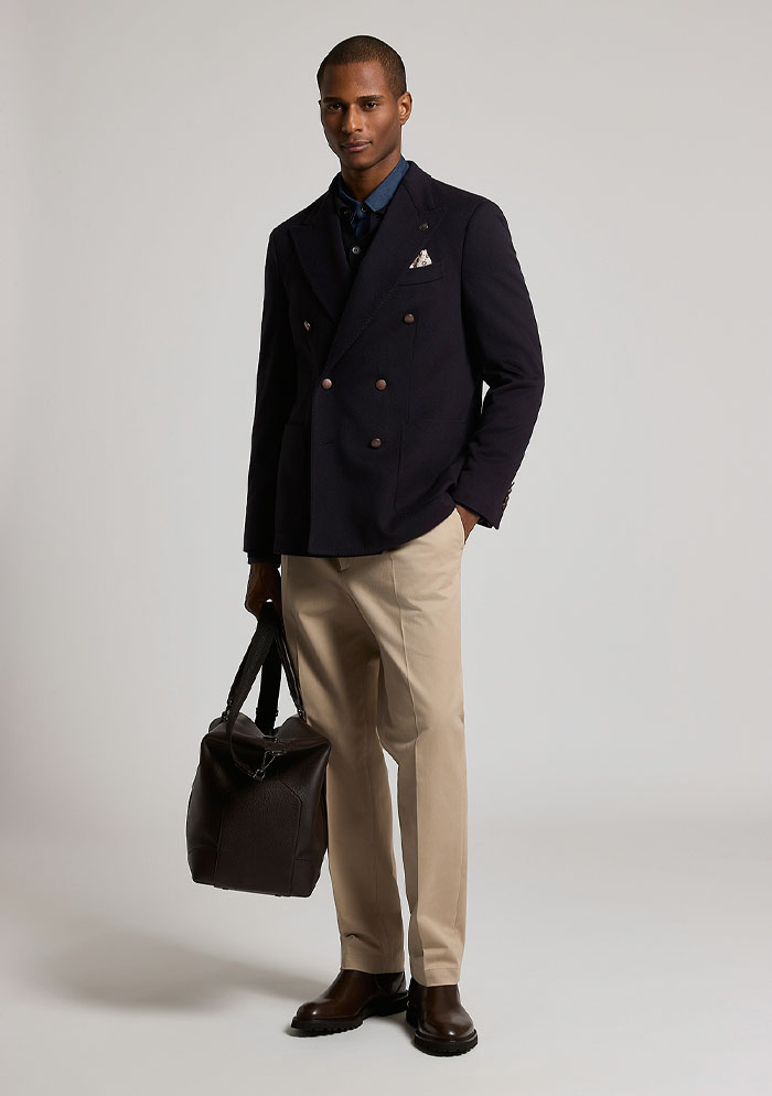 أقمشة اختيرت بعناية من النسيج الإيطالي الرفيع لأناقة لا غبار عليها، فإن تصاميم التريكو قدّمت لك خامات جديدة وأنماط حياكة مستوحاة من الشمال الأوروبي، لتمتدّ إلى الإكسسوارات. وترافق هذه القطع سترات بتصميم مبسّط خفيف الوزن، إلى جانب عودة قوية لقطع تحمل بصمة الخياطة الحرفية، تعكس صلة بالماضي عبر تمرينٍ واعٍ في الذاكرة النسيجية. وتتوسّع السراويل من حيث القصّات من دون المساس بالتوازن البنيوي، فيما يُعاد ابتكار الدنيم عبر معالجات تقنية دقيقة بمستوى من المتانة يجعله رفيقاً مناسباً للاستخدام اليومي.