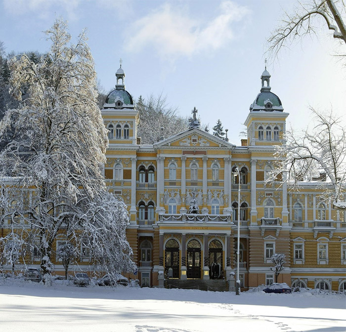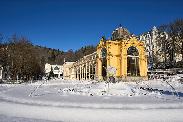 وكأن الشتاء يحلّ على مارينباد Marienbad، متوشحاً بكل ما يحمله من هيبة وسحر، فيكسوها بثوب ناصع من الثلج، ويحوّل حدائقها وممراتها إلى لوحات بيضاء تنبض بالسلام والسكينة. وعلى الرغم من قسوة البرد، لا تخفت حركة الزائرين إليها طلباً لمياهها المعدنية الشهيرة التي ارتبط اسمها منذ قرون بالعلاج والاستشفاء. فهذه البلدة التشيكية، المتربعة في حضن الطبيعة، لا تعرف السكون حتى في أقسى فصول السنة؛ إذ تتحول برودة أجوائها إلى عنصر جذب خاص، يضفي على المكان صفاءً نادراً وهدوءاً عميقاً. وبين تاريخها العريق كبلدة للشفاء وطابعها الهادىء، تغدو مارينباد مقصداً مثالياً لمن ينشدون الراحة الجسدية والتوازن النفسي في آن واحد.