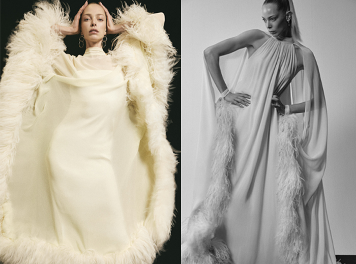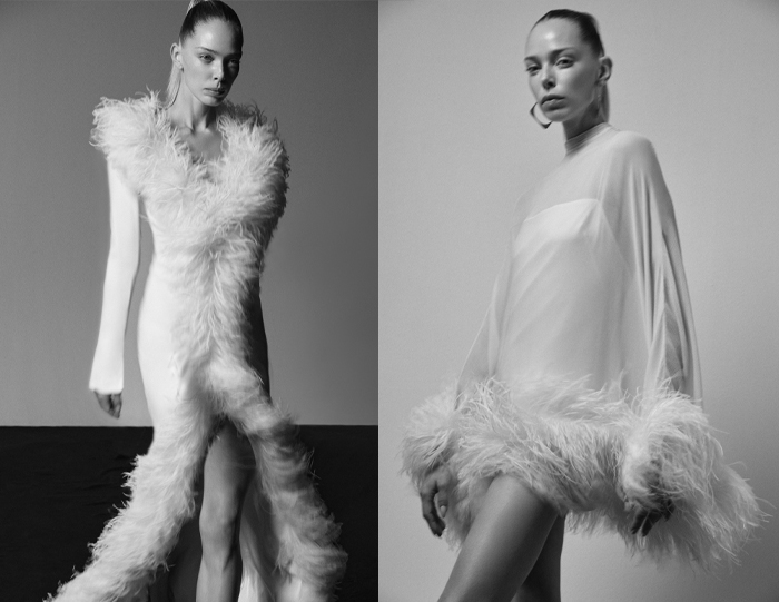 تتميز كل قطعة بخطوطها البسيطة وخاماتها الفريدة، وقد صُممت بعناية فائقة ليتم ارتداؤها كفستان زفاف أو في مناسبة خاصة.
