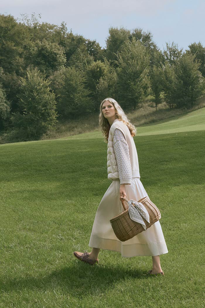 ترتكز هذه المجموعة إلى محاور مفصلية تحدّد إيقاع التحوّل الموسمي من خلال قطع مثل معطف ترانش من القطن التقني بأحجام غير متوقّعة، ومعاطف خفيفة تشبه الغبار في خفّتها، وسترات مبطّنة مزدانة بتفاصيل محبوكة ولمسات "بونتو لوتشي" Punto Luce. ويكتسب الجلد طراوة جديدة عبر إطلالات من الشاموا الكامل، ويأخذ طابعاً عصرياً في سترات البومبر والصدريات المصفّحة.