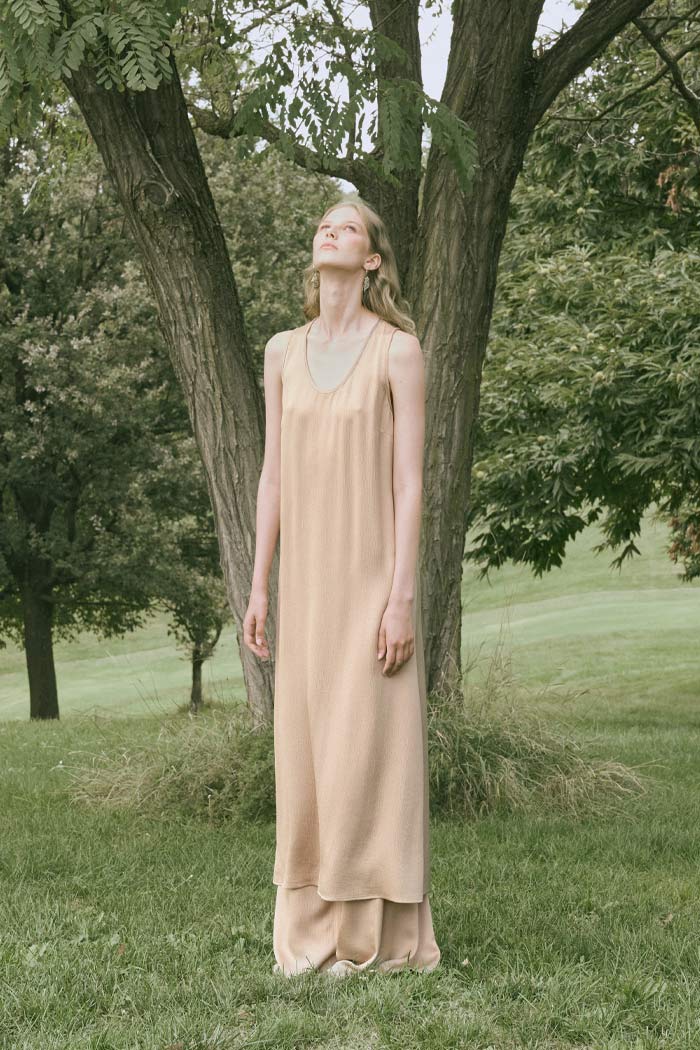 كما ويظهر الترتر بأناقة في شيفونات الساتان، والجورجيت الخفيف كالهَواء، والتول المطرّز بنقوش أوراق الشجر. بينما ينساب الساتان المطرّق فوق الفساتين وبدلات البالازو، ويتّخذ البوبلين طابعاً معاصراً بسيطاً ومباشراً.
