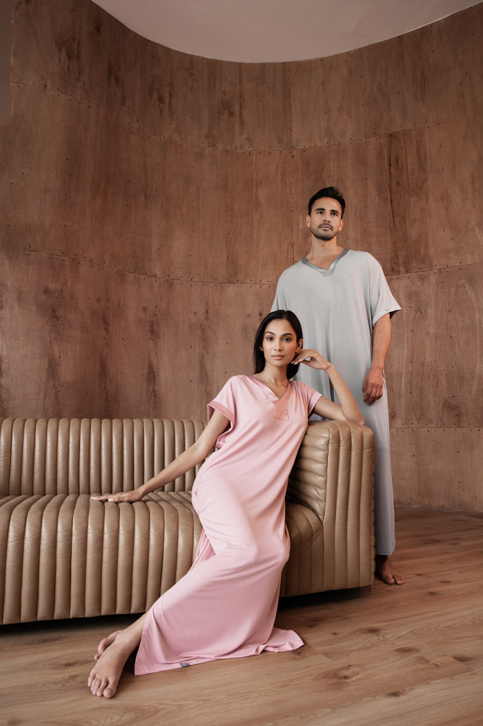 تضم المجموعة الجديدة تشكيلة منتقاة بعناية من العبايات المنزلية الأنيقة المصممة للنساء والرجال، بأربعة ألوان للنساء وثلاثة للرجال. وتتميز القطع بألوانها الهادئة والمألوفة؛ إذ تتدرج بين الأسود، والأزرق الليلي، والبيج الرملي، والوردي الزهري، والرمادي الداكن. ويمنح تناغم الألوان بين تصاميم الرجال والنساء المجموعة لمسة راقية تعكس ذوقًا رفيعًا.