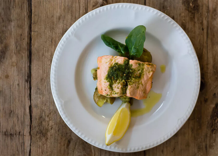 طريقة عمل فيليه السلمون ببيستو الشبت