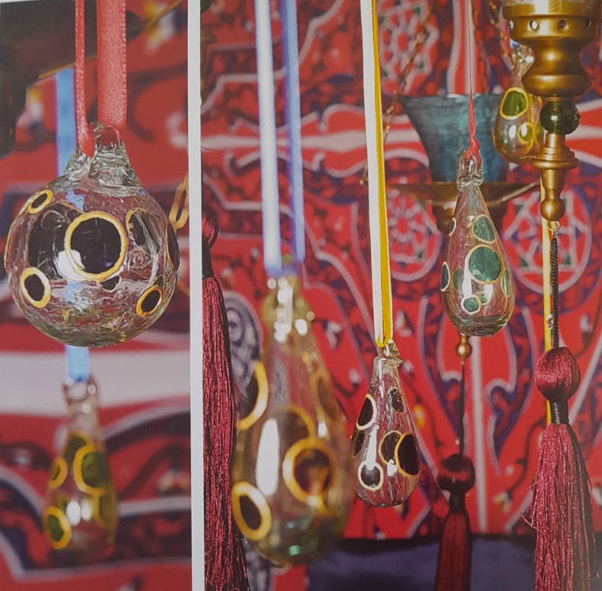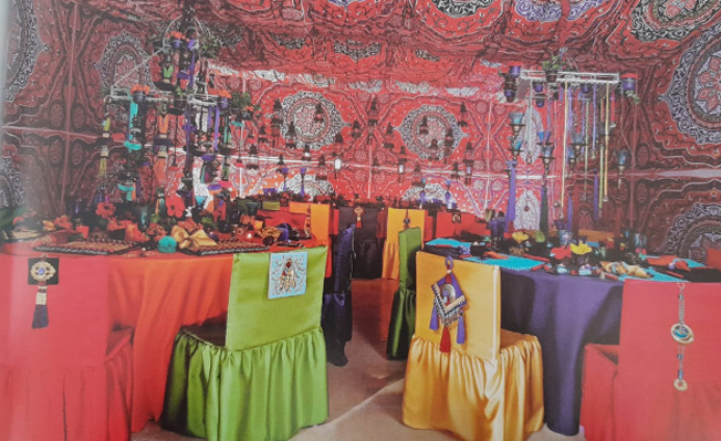 غالباً ما تصنع التفاصيل الصغيرة والأكسسوارات جمالية المكان والمائدة بشكل خاص... في هذه المائدة التي أبدعت في تصميمها السيدة ندى سلامه الخبيرة في تنسيق الموائد والحفلات الكبرى، إختيرت الأكسسوارات بعناية فائقة لتضفي أجواءً رمضانية بامتياز... فمن الفوانيس التي تدلت فوق المائدة الى الأكسسوارات على شكل هلال ومسابح وعيون زرقاء وكف فاطمة والتي زينت الكراسي التي اتشحت بالألوان، الى المفارش التي غطت الجدران والمائدة بالاضافة الى الفوط التي أُحيطت بجواهر واكسسوارات من وحي الشهر الفضيل... وغيرها: تفاصيل صنعت الفرق كل الفرق لتفاجئي ضيوفك بأجواء أنيقة لا تُنسى. اما آنية الزجاج المنفوج المزدان بالرسومات والالون فقد أضفت المزيد من السحر الى المكان الذي بدا اشبه بلوحة فنية.