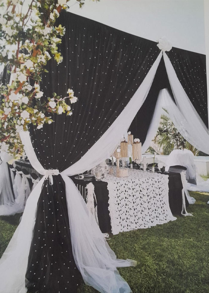 مائدة تخرج عما هو مألوف... جريئة لجهة اختيار الأسود لأغطية الطاولة والكراسي، ولكنها تنبض بالفخامة. الصور والتفاصيل في هذا الرابط: بالأسود والأبيض!