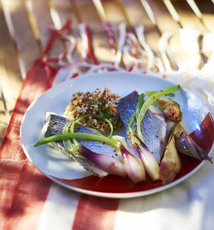طريقة عمل السمك المشوي مع الكينوا والخضار