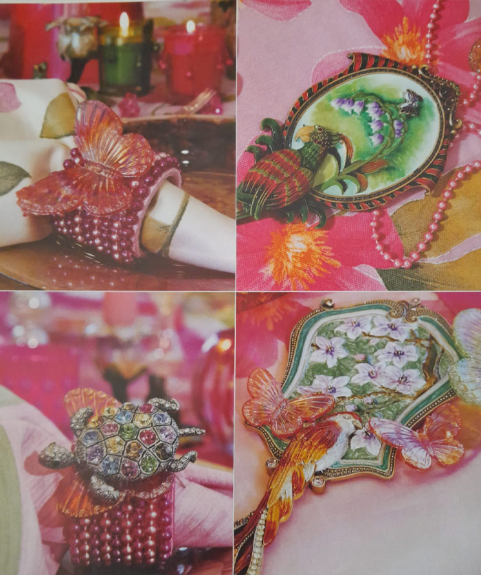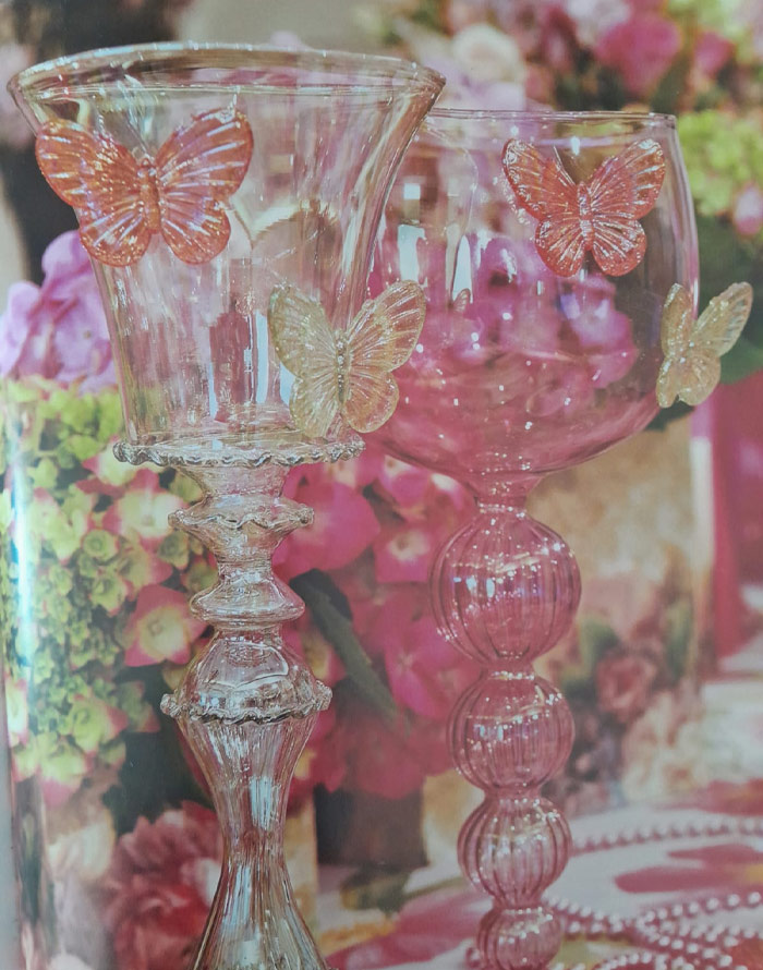 ولأن أدق التفاصيل تصنع الفرق، لم تُترك الكراسي خارج هذه الحكاية الربيعية، فقد زُيّنت مساند الكراسي بباقات صغيرة من الأزهار الوردية لتكمل هذه اللوحة الرائعة بلمسة غير تقليدية. كما انتشرت مجسمات الفراشات من الزجاج والبلكسي الملون على الكؤوس والفوط ومختلف أدوات المائدة لتنشر رحيق الربيع بأجمل صوره.