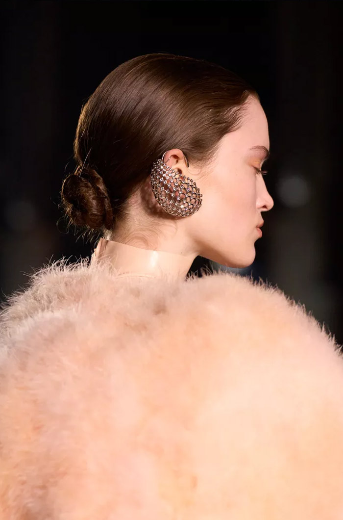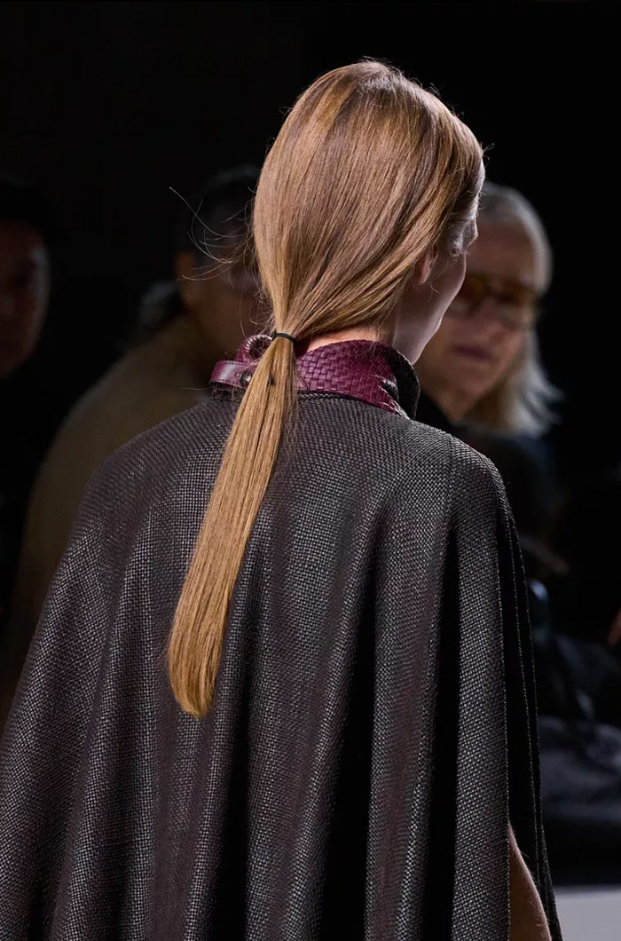 أما الإطلالات الأكثر بساطة، فتجلّت في ذيل الحصان المنخفض الذي ظهر في عروض Bottega Veneta وVictoria Beckham، حيث تم تسريح الشعر بانسيابية وربطه بطريقة بسيطة للغاية، في إطلالة تعكس أناقة هادئة.