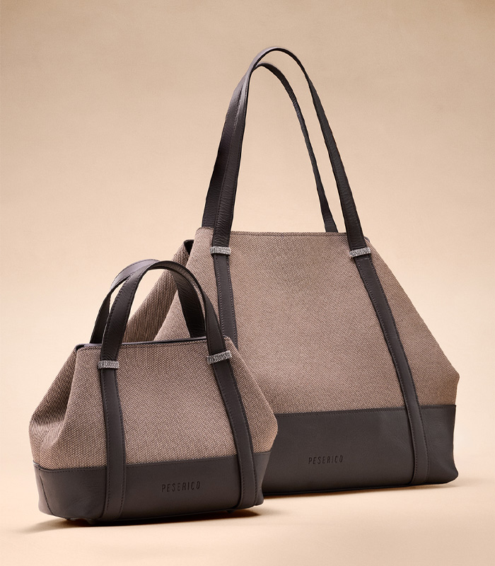وتتوافر إيتينيرا Itinera بحجمين، وتُطرح إمّا من الجلد الراقي، أو في إصدار ثنائي الخامة مع إضافات من القماش، بما يمنحها طابعاً صيفياً وحضرياً في الوقت نفسه. وأما صلتها بتراث بيسيريكو Peserico فتظهر في الحلقات المثبّتة على المقابض، والمزيّنة بسلسلة بونتو لوتشه Punto Luce ذات القطع الماسية، وهي من العلامات المميّزة للدار.