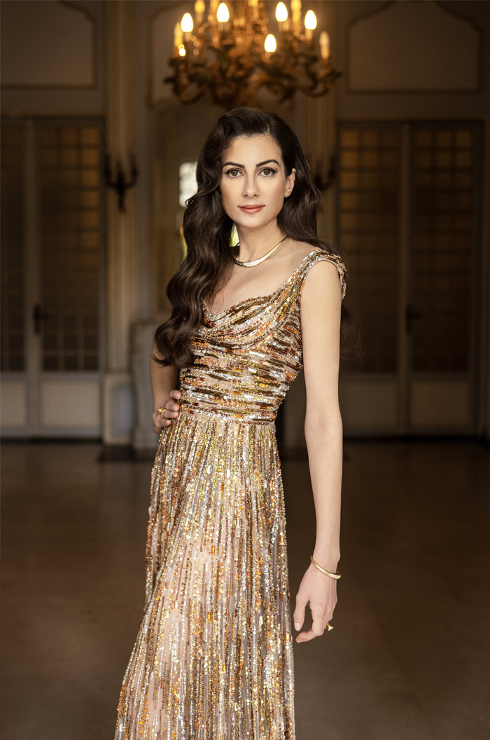 Dress: Georges Hobeika | Gold Chocker and Ring: Nada Ghazal Jewlery