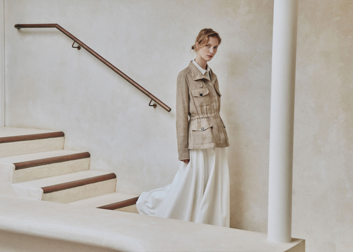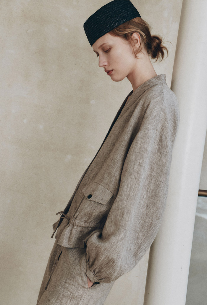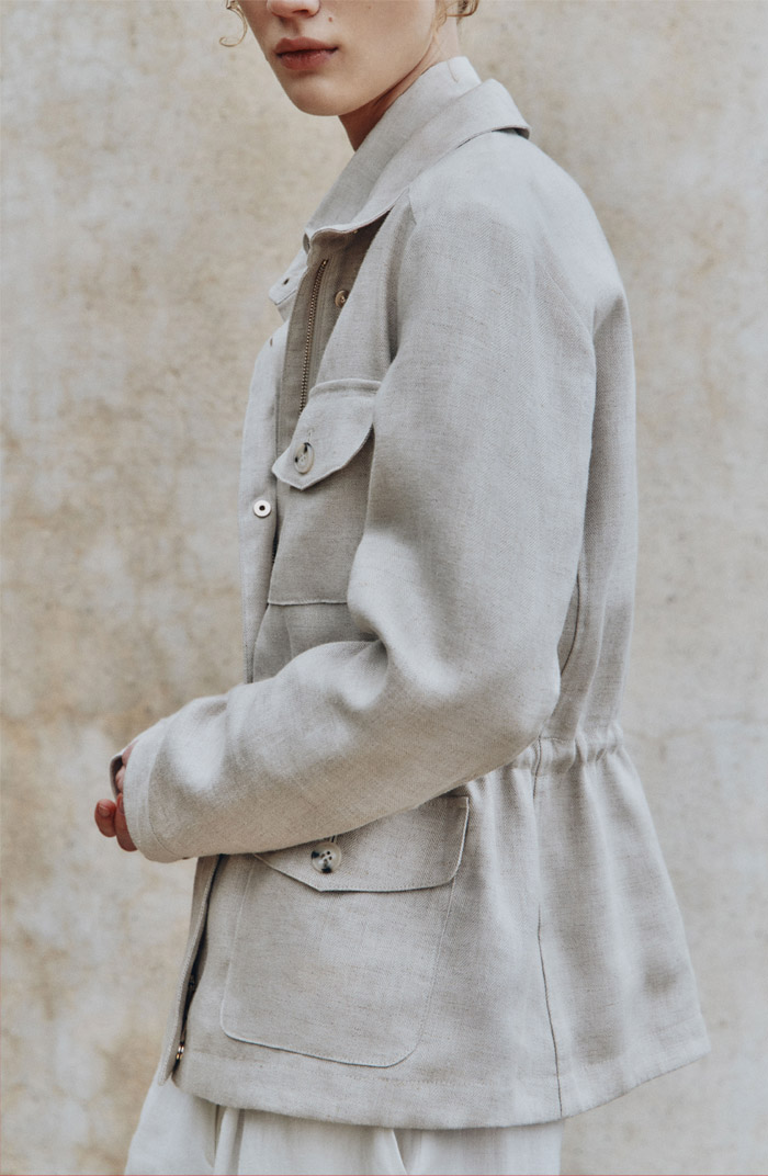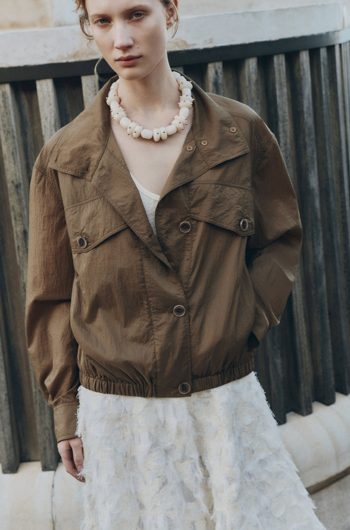 أما السترات، فتضيف بُعداً عملياً إلى المجموعة، حيث تبرز سترة كارغو من الكتّان بياقة قائمة، إلى جانب جاكيت “بومبر” مستوحى من الطابع العملي. وتقترح تنسيقات التصميم ارتداء البومبر مع توب طويل، وتنورة مطرّزة بقصّة واسعة، مع عقد بارز لإطلالة متوازنة وعصرية.
