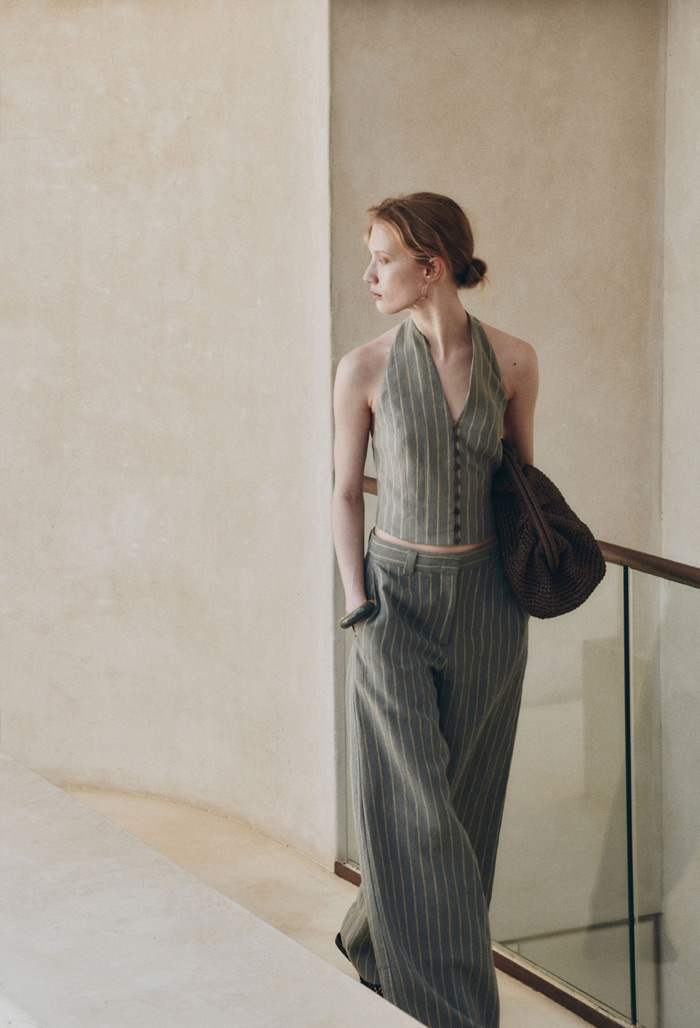 صُمّمت جميع القطع باستخدام الكتّان ومزيج الأقمشة الخفيفةلإحساس بالانتعاش والراحة، مع الحفاظ على قصّات مدروسة أنيقة. وتضم التشكيلة أطقمًا منسّقة بطابع Minimalistic، من بينها إطلالة باللون البني - الذي يعد من بين إحدى صيحات هذا العام - مع بلوزة برباط، وطقم ميتاليك مكشوف الكتفين، إلى جانب مجموعة “ميلانج” مع بليزر بقصّة مريحة، وإطلالة مخططة تكتمل بسترة محددة الخصر.