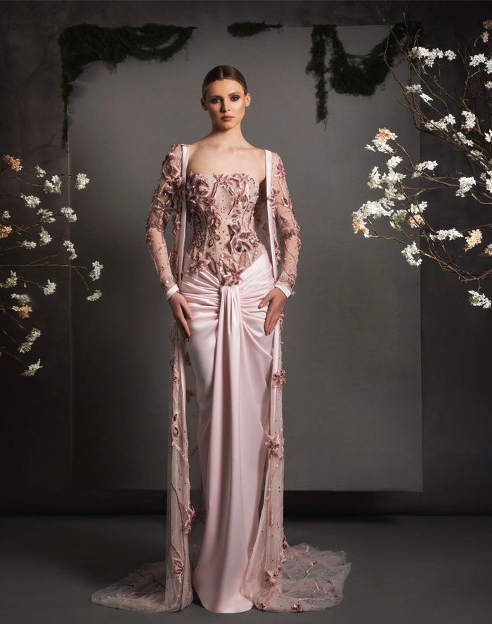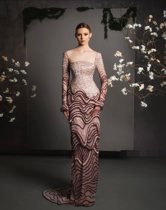 أما قصّات الفساتين، فتنوعت بين الطويلة الانسيابية والتصاميم المحددة للقوام، مع اعتماد أقمشة خفيفة تنسجم مع أجواء الربيع، مثل الشيفون والتول. وقد بدت التفاصيل مدروسة بعناية، بعيدًا عن المبالغة، لتمنح كل قطعة شخصية فريدة، نجح Jean-Charles Zakaria من خلالها، في تقديم تصاميم تجمع بين الأناقة والبساطة، وتبرز أنوثة المرأة بأسلوب راقٍ وملفت.