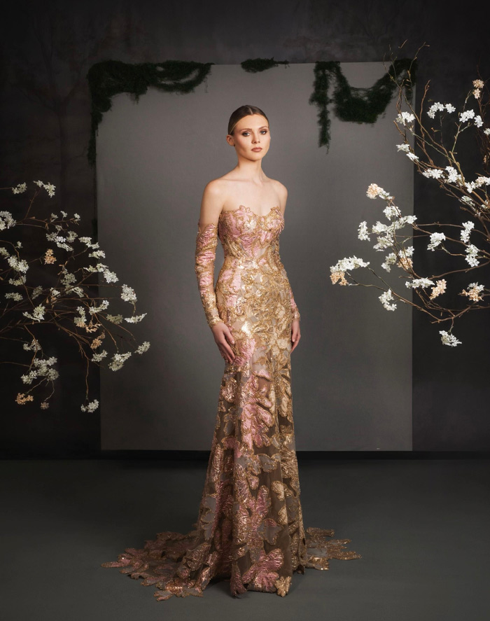 وقد أتت التصاميم مستوحاة من "عالم الزهور" ... وهو ما بدا واضحًا من خلال التفاصيل الدقيقة والتطريزات التي جاءت على شكل أزهار، وكأن كل فستان يعبّر عن زهرة معينة.