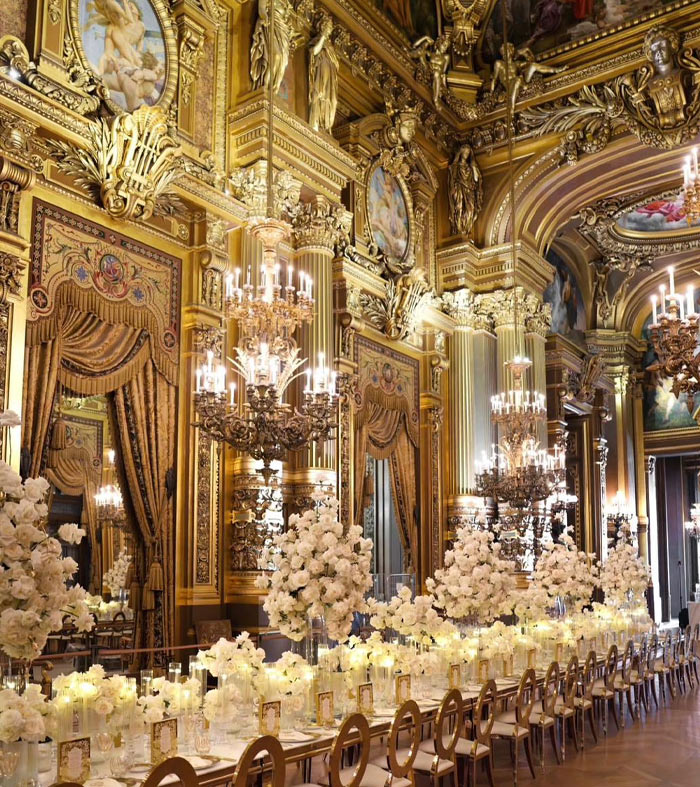 عرس غاية في الفخامة في أوبرا غارنييه الفرنسية لوحات فنية رائعة أبدعها المصمم طوني بريس