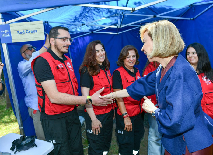 وفي ختام الافتتاح، جالت اللبنانية الأولى على أجنحة المنتدى كافة، مطلعة على أبرز المشاريع والمبادرات الطلابية المشاركة فيه. وتفاعلت مباشرةً مع المنظمات والمؤسسات ومع الطلاب، مستمعةً إلى تجاربهم ومداخلاتهم، ومشجّعةً مبادراتهم التي تعكس حسًّا عاليًا بالمسؤولية والانتماء، ومؤكدةً على أهمية دورهم كشركاء فاعلين في بناء المجتمع.