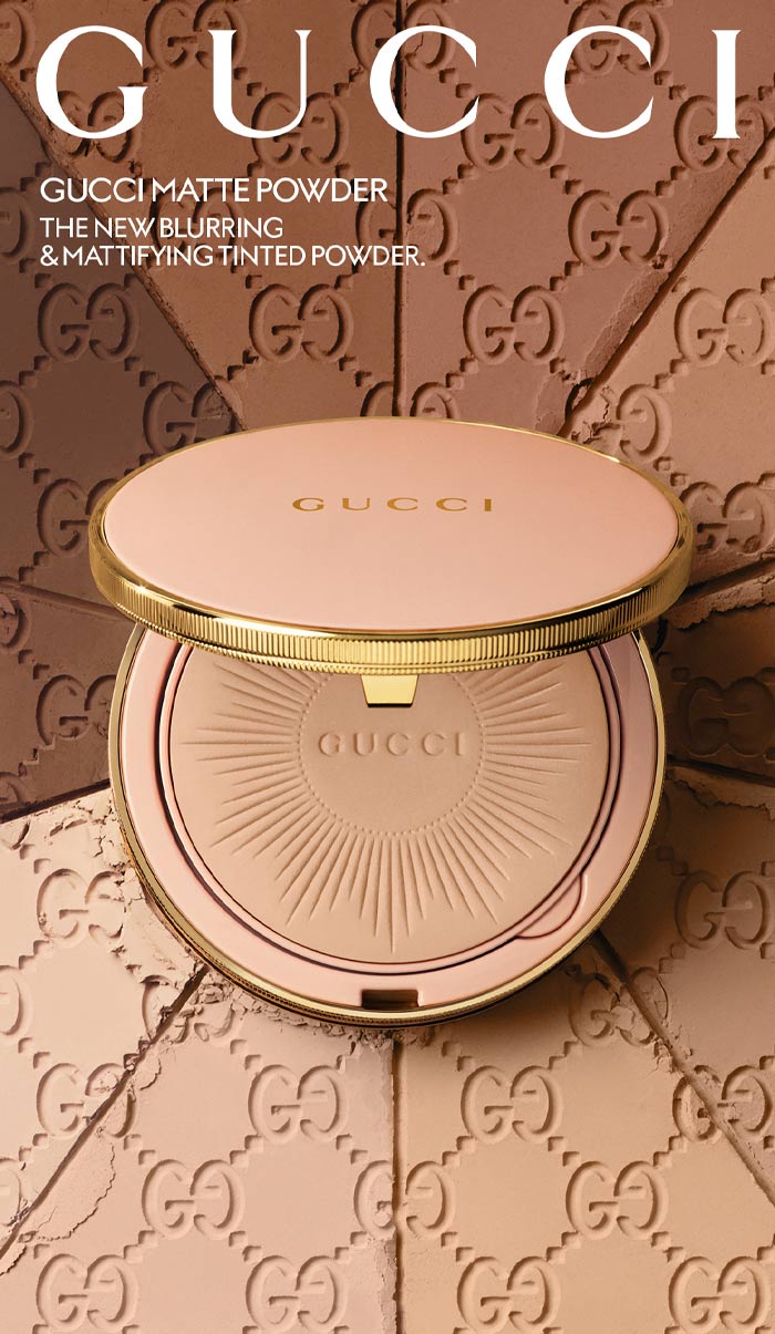 One tap does it all with the new Gucci Matte Powder, a shine-free setting powder that instantly blurs, mattifies, and enhances the complexion. It can be used alone or paired with the Gucci Glow Skin Tint as the perfect duo to care, even, and blur.