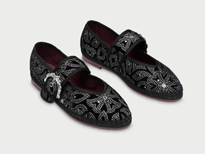 Perfect for New Year’s Eve, these embellished mary janes from Flabelus deliver the kind of sparkle that glimmers softly with every step. The intricate silver embroidery and crystal-studded buckle, create the effortless NYE glamour without trying too hard.