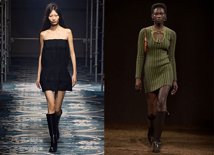 Riding boots are back for the autumn/winter season, reimagined with a distinctly city-forward attitude. Seen across the Fall 2025 runways, they reemerge as both a classic and contemporary staple looking less equestrian and more urban, styles range from buckled and flat to stacked-heel variations that blend functionality with refinement. At Hermès, tall, structured leather riding boots were paired with floaty dresses and textured knits, while at Prada, glossy knee-highs were styled with sculptural knit dresses.