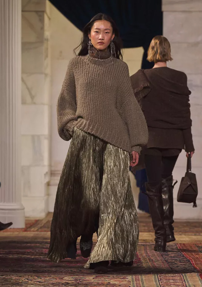 “My Fall 2026 collection is inspired by a rebellious spirit and the confidence of a woman who will wear it in her own way to tell her own story,” Ralph Lauren wrote in his show notes.