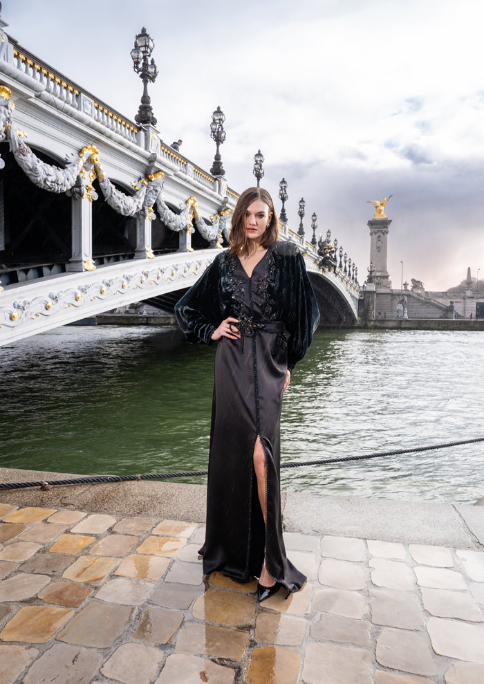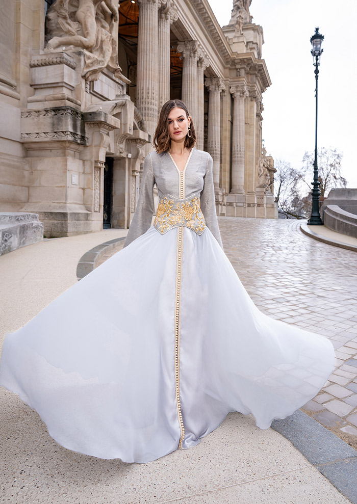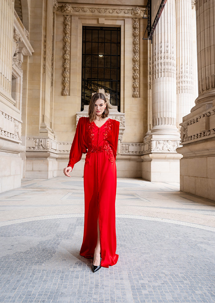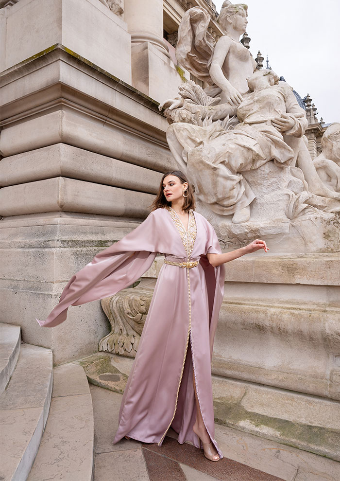 This season, a selection of signature pieces was photographed in Paris, creating a striking dialogue between Moroccan heritage and one of the world’s fashion capitals. Against the refined architecture and understated sophistication of the French city, the caftan reveals its natural ability to transcend borders, a garment deeply anchored in identity yet effortlessly aligned with contemporary global fashion.