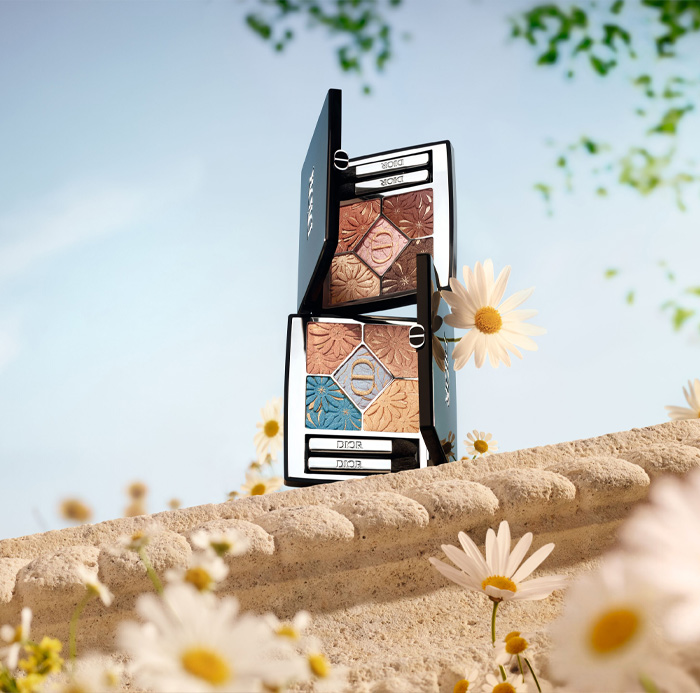 For the eyes, Peter Philips explores the contrast of cool and warm tones through Diorshow 5 Couleurs. The limited-edition palettes—162 Summer Azur and 670 Sunset Bronze—blend satin and glitter finishes in vibrant, summer-inspired harmonies, from airy sky blues to glowing sunset hues.
