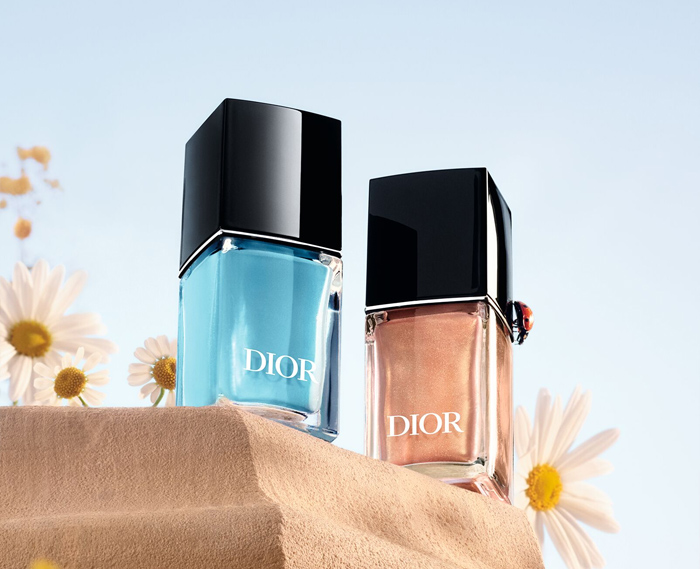 This summer, Dior Vernis unveils two new limited-edition shades, 582 Azur, a vibrant blue, and 110 Sunset, an iridescent bronze, confirming an endless summer of radiance.