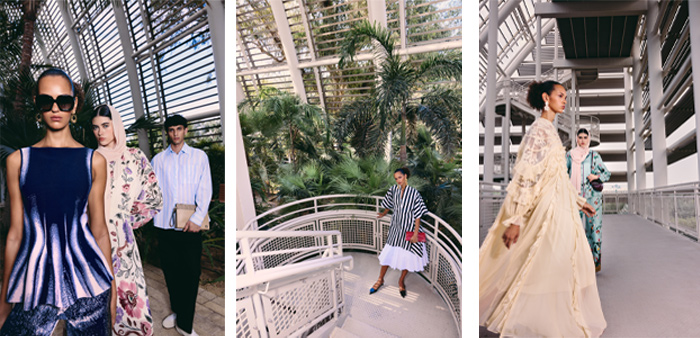 A refined selection of ready-to-wear brings together a diverse mix of silhouettes and textures: fluid dresses by Zimmermann, Jacquemus, Farm Rio and Victoria Beckham introduce movement through soft draping, relaxed tailoring and expressive prints. While coordinated separates from La Double J bring a more playful, layered approach to dressing.